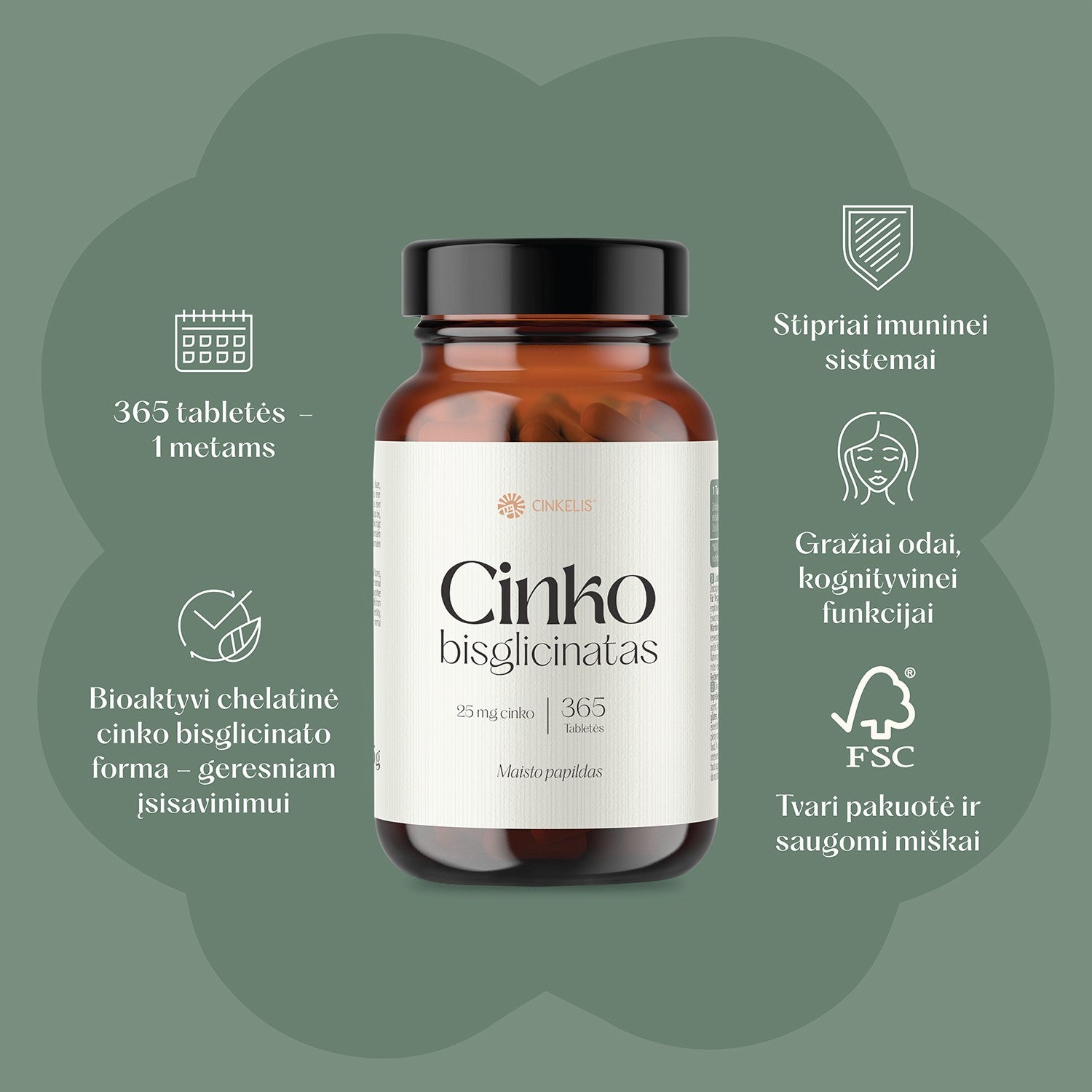 Cinkas yra vienas pagrindinių mineralų, dalyvaujančių daugelyje svarbių organizmo procesų, tokių kaip normali imuninės sistemos veikla ir kognityvinė funkcija. Cinkas yra svarbus komponentas palaikant normalų vaisingumą, reprodukcinę funkciją bei tinkamą testosterono koncentraciją kraujyje, todėl ypač aktualus vaisingo amžiaus vyrams. Cinkas taip pat reikšmingai padeda palaikyti gerą kaulų ir nagų, odos bei plaukų būklę. Šis mineralas užtikrina normalų regėjimą ir apsaugo ląsteles nuo oksidacinės pažaidos. Cinkas padeda palaikyti normalią daugelio maistinių medžiagų, – riebalų rūgščių, angliavandenių, mikroelementų bei vitamino A apykaitą, taip pat užtikrina normalią baltymų ir DNR sintezę.