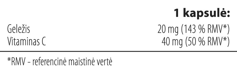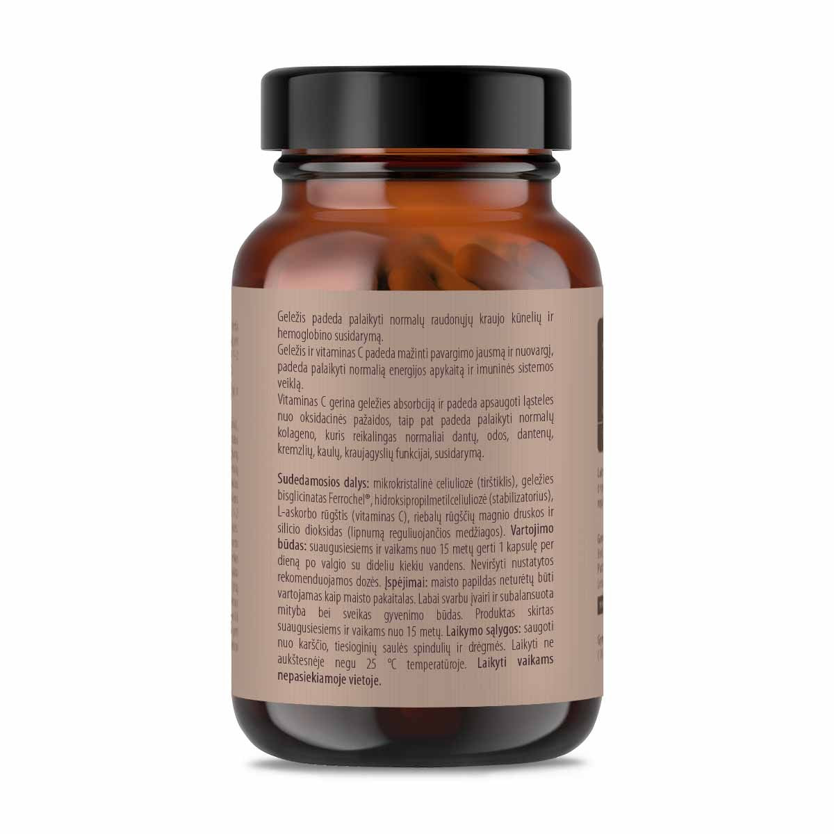 Geležis – reikšmingas mikroelementas, kurio pagrindinis šaltinis yra maistas. Vis dėlto dėl įvairių priežasčių geležis įsisavinama organizme ganėtinai sudėtingai, tad neretai didinant geležies kiekį kraujyje prireikia kokybiškų maisto papildų. Šio geležies papildo išskirtinumas – speciali patentuota visiškai chelatinė Ferrochel® formulė, sudaryta sujungus geležį su dviem organinėmis glicerino molekulėmis. Bisglicinato formulė užtikrina itin veiksmingą geležies absorbciją, kuri netrukdo įsisavinti kitas maistines medžiagas, ir yra kur kas švelnesnė skrandžiui. Geležis padeda palaikyti normalų eritrocitų (raudonųjų kraujo kūnelių) ir hemoglobino susidarymą, energijos apykaitą ir deguonies pernešimą. Taip pat geležis atlieka tam tikrą funkciją ląstelių dalijimosi procese ir palaiko normalią pažinimo funkciją.