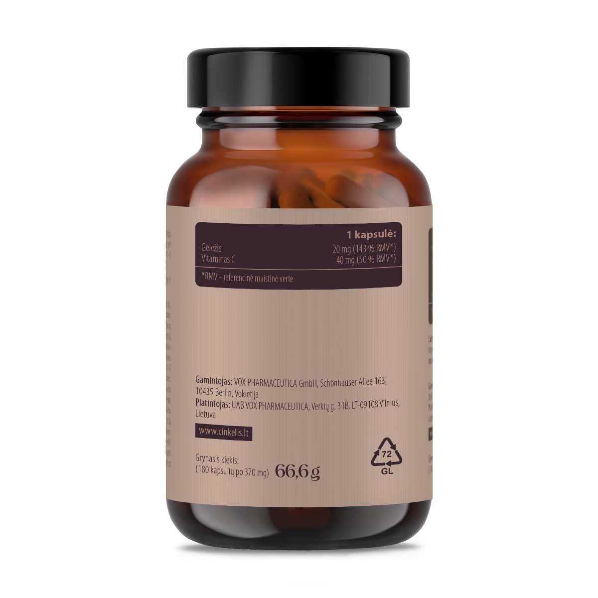 Vitaminas C veikia išvien su geležimi ne tik gerindamas jos įsisavinimą, bet ir prisidėdamas prie imuninės sistemos veiklos, normalios energijos apykaitos ir mažinant nuovargį bei pavargimo jausmą. Taip pat vitaminas C yra svarbus elementas susidarant kolagenui, kuris reikalingas normaliai odos, dantų, dantenų, kremzlių, kaulų ir kraujagyslių funkcijai. Vitaminas C gali padėti palaikyti psichologinę funkciją, nervų sistemą ir apsaugoti ląsteles nuo oksidacinės pažaidos.
