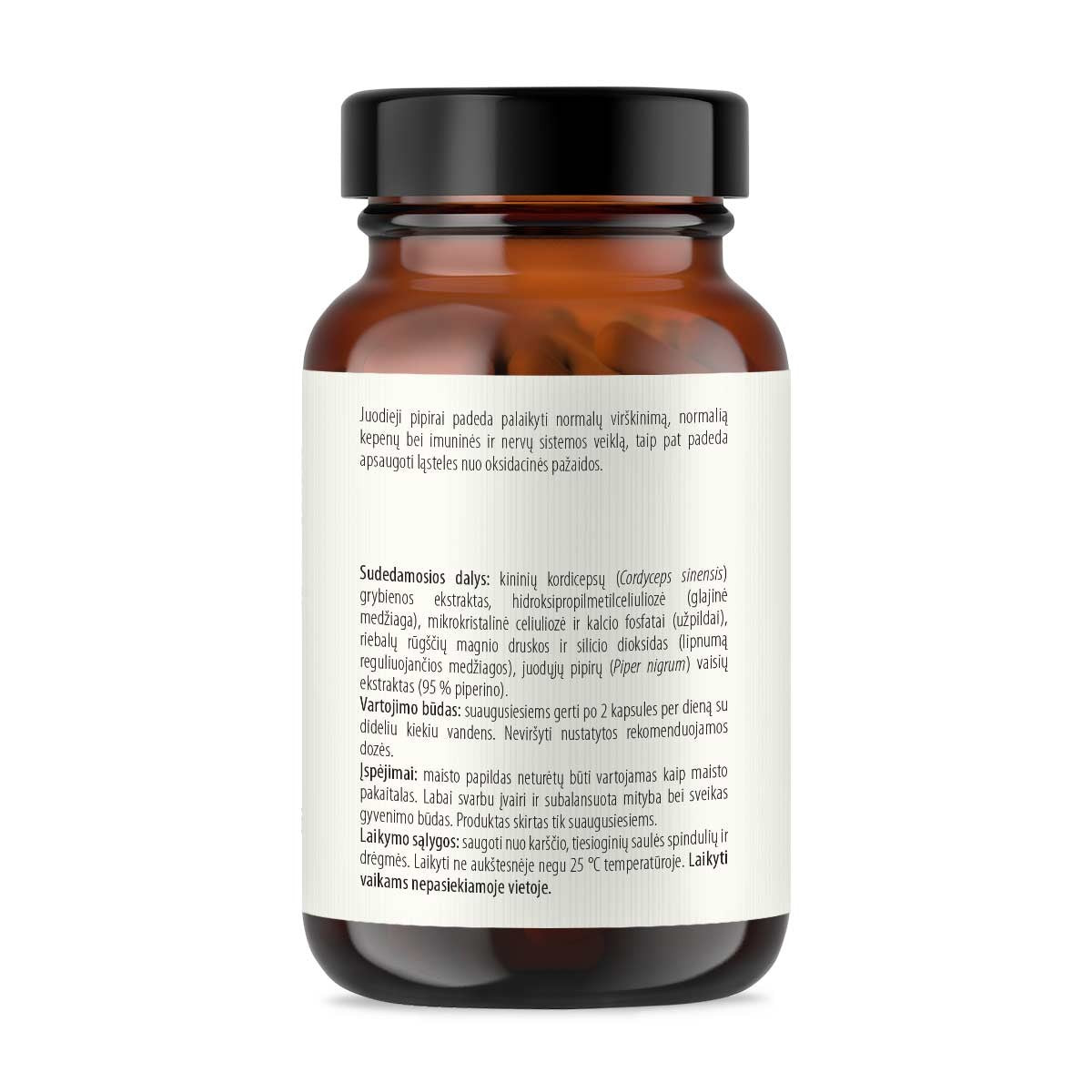 Kompleksas papildytas Piper nigrum (juodaisiais pipirais), sudarant sinergiškai veikiantį derinį. Juodieji pipirai – dar vienas vertingas nuo senovės vartotas augalas. Čia esantis biologiškai aktyvus komponentas piperinas yra stiprus natūralus antioksidantas, mažinantis laisvųjų radikalų susidarymą ir apsaugantis nuo ląstelių pažeidimų. Taip pat juodieji pipirai padeda palaikyti normalų virškinimą, normalią kepenų bei imuninės ir nervų sistemos veiklą.