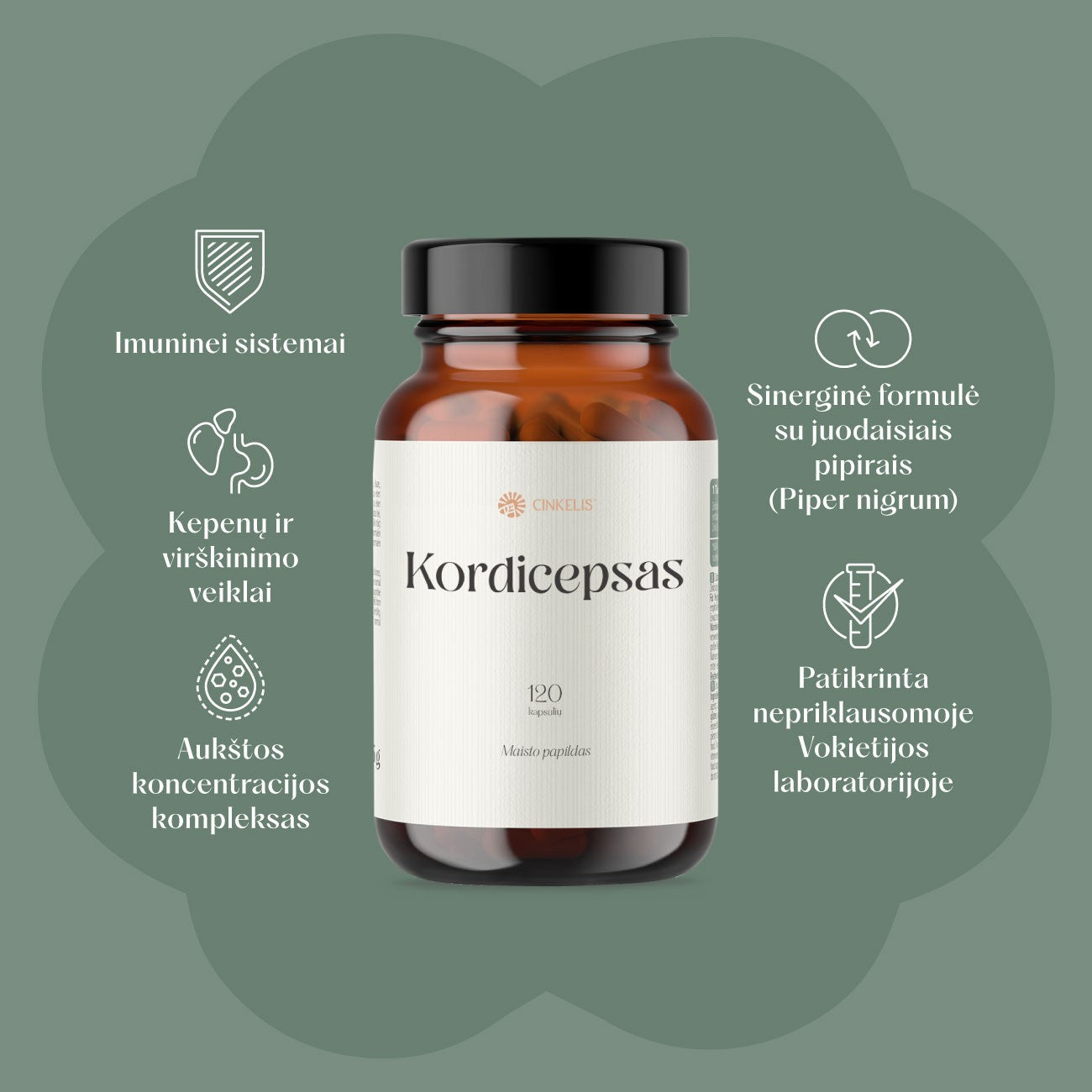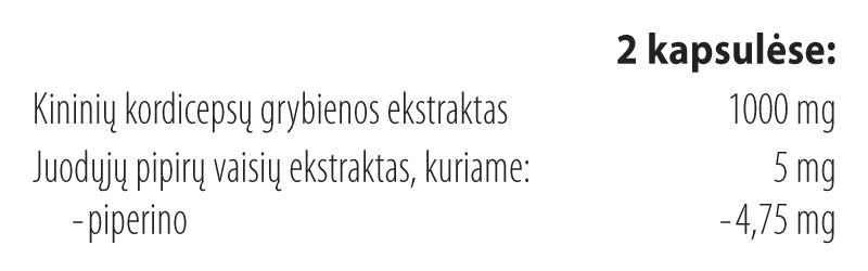 Kordicepsas priskiriamas parazitinių grybų rūšiai, seniau kordicepso liekanas žmonės, žinodami apie nepaprastas šių grybų savybes, rinkdavo tiesiog rankomis ir džiovindavo. Šiuose grybuose gausu amino rūgščių ir polisacharidų. Komplekse esantis Cordyceps sinensis, tai yra kininis ofiokordicepsas, yra pripažintas vertingiausiu iš 500 šių grybų rūšių. Grybai pasižymi specifiniu ir ryškiu skoniu, kuris patinka ne visiems, tačiau kapsulių pavidalo papildas lengvai vartojamas, jis neturi nepageidaujamo poskonio.