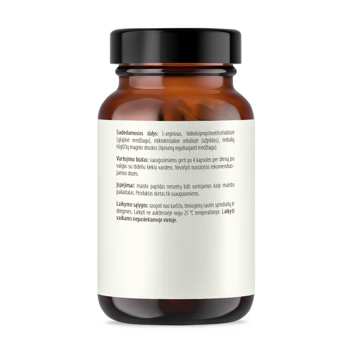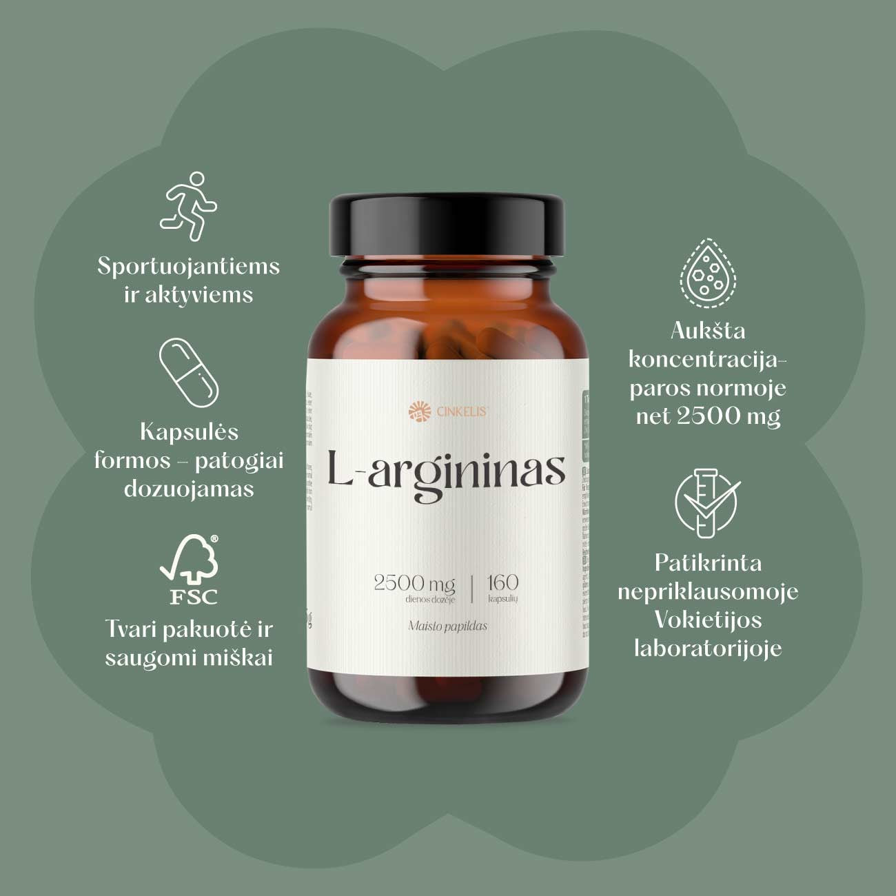 L-argininas – viena iš nepakeičiamųjų aminorūgščių, kurios nedidelis kiekis natūraliai gaminamas žmogaus organizme. Patiriant stiprų fizinį krūvį arba stresą natūraliai gaminamų l-arginino atsargų nebepakanka, todėl jos turėtų būti papildytos subalansuota mityba arba kokybišku maisto papildu. Nemažai l-arginino yra tam tikruose gyvulinės ir augalinės kilmės produktuose – mėsoje, žuvyse, žemės ir graikiniuose riešutuose, moliūgų ir linų sėklose, varškėje bei kiaušiniuose. Maisto papildą kapsulėmis patogu dozuoti ir aprūpinti organizmą viena svarbiausių amino rūgščių.